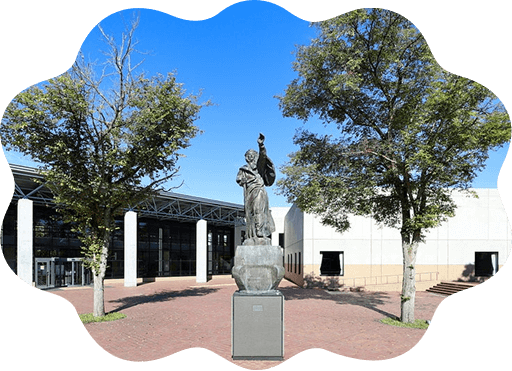 大学前にある像は 「アダム・ミキェヴィッチ」さん